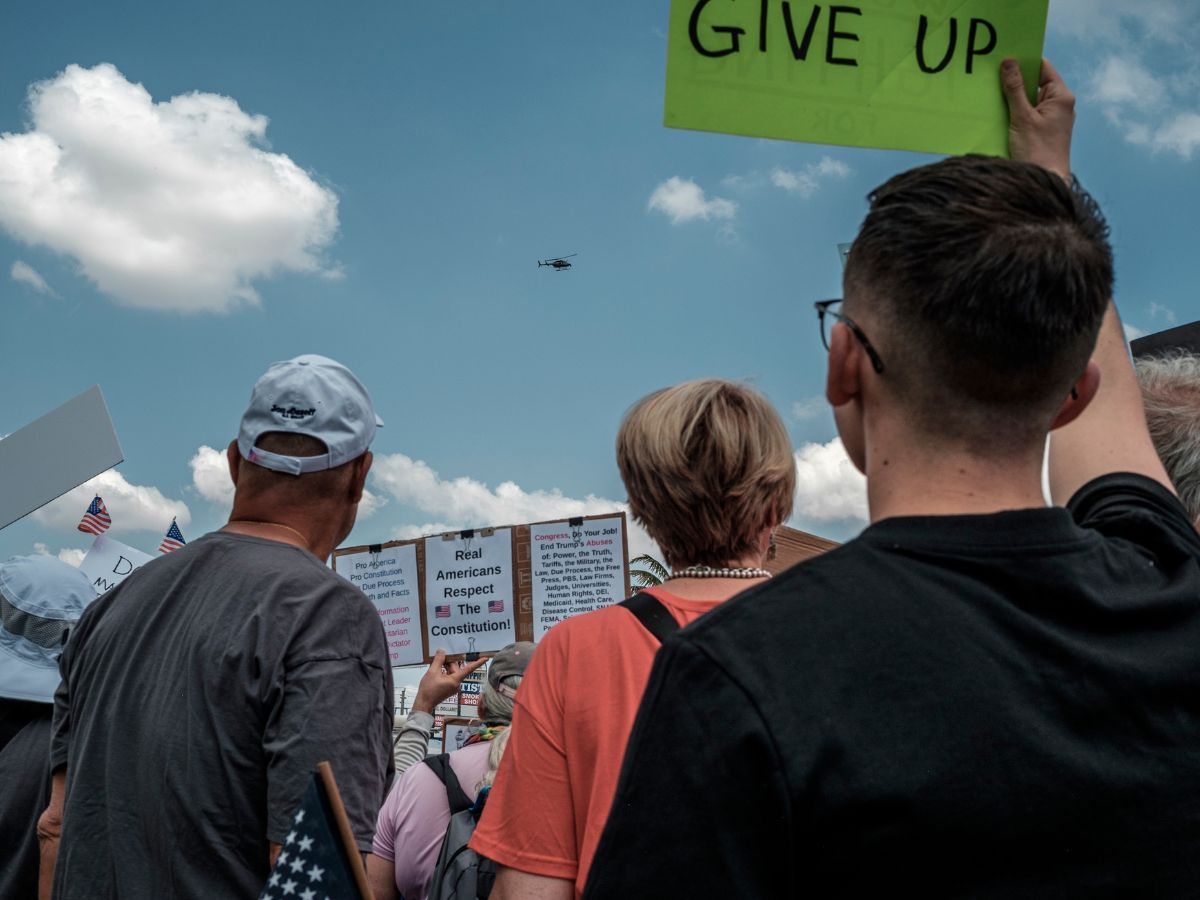 Big Turnout: More than 4,000 demonstrators gathered at Tropical Park for the No Kings protest on March 28. The protest was held from noon to 3 p.m. Protestors are shown here along Bird Road. LUCAS DUARTE/THE REPORTER