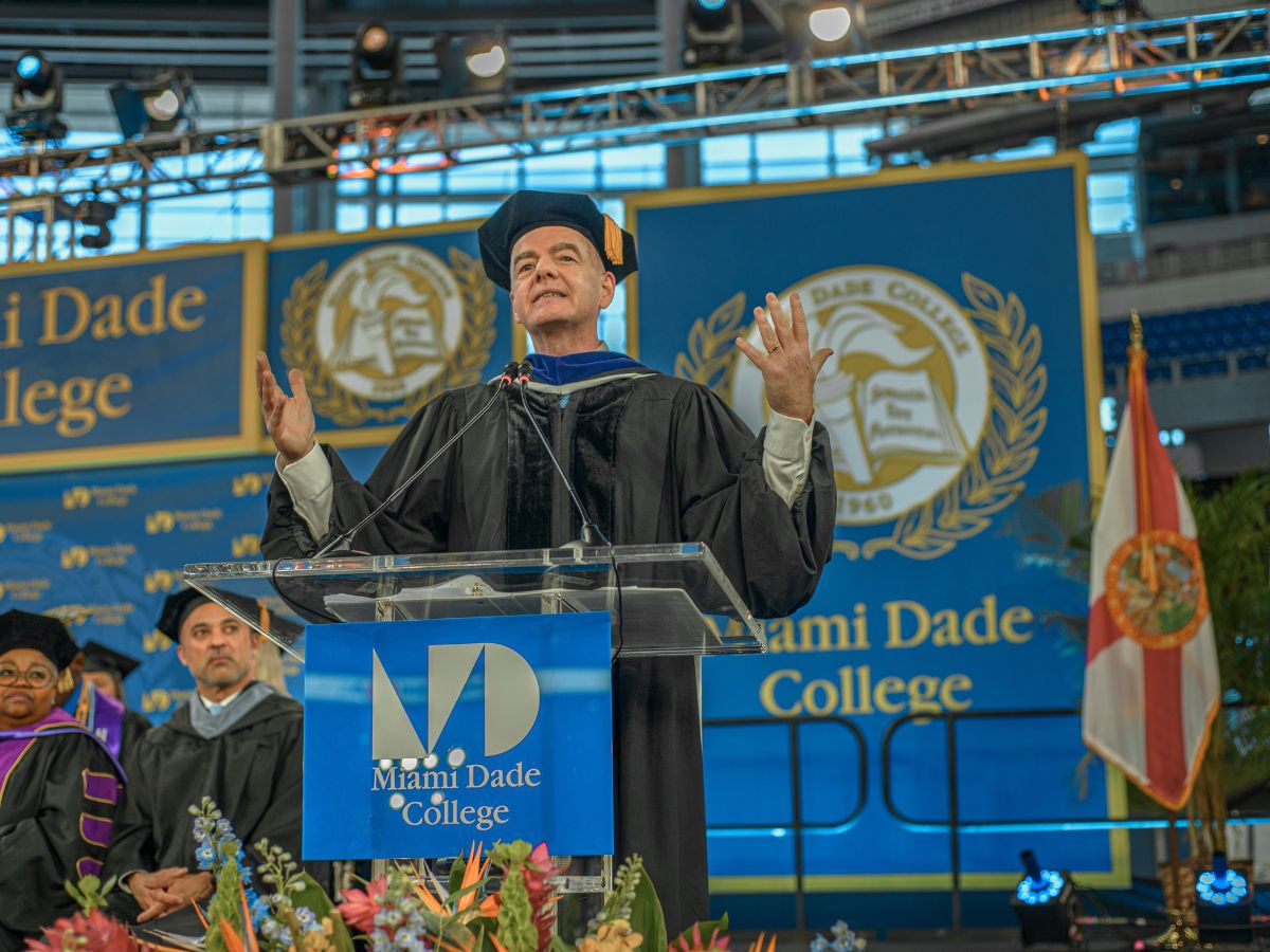 Throughout the ceremonies, graduates were showered with knowledge from a varied group of speakers. FIFA President Gianni Infantino addressed graduates from Wolfson, Medical and Homestead, billionaire businessman Orlando Bravo talked to the Kendall and Padrón campus students, and Anastasios Kamoutsas, the Florida commissioner of education, was the guest speaker at the North, Hialeah, and West campuses ceremony.