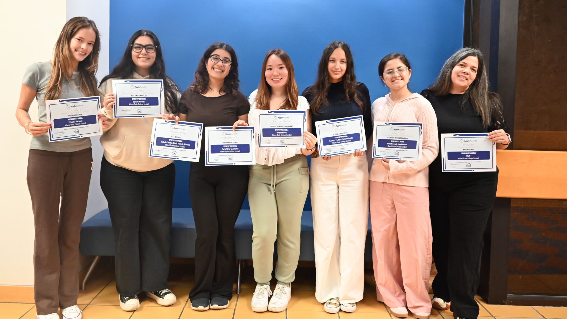 Storybytes, the student-led multimedia platform at Kendall Campus, won eight Apple Awards in the Two-Year Colleges Division on March 7 during the 2026 Spring National College Media Convention.
