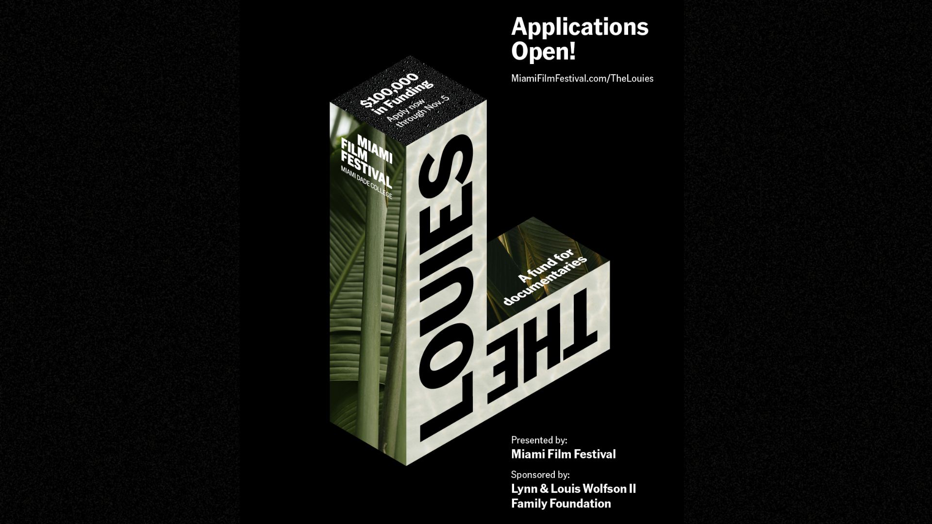 Applications for The Louies, $100,000 in funding that will be shared by six filmmakers creating documentaries about South Florida, are open through Nov. 5.