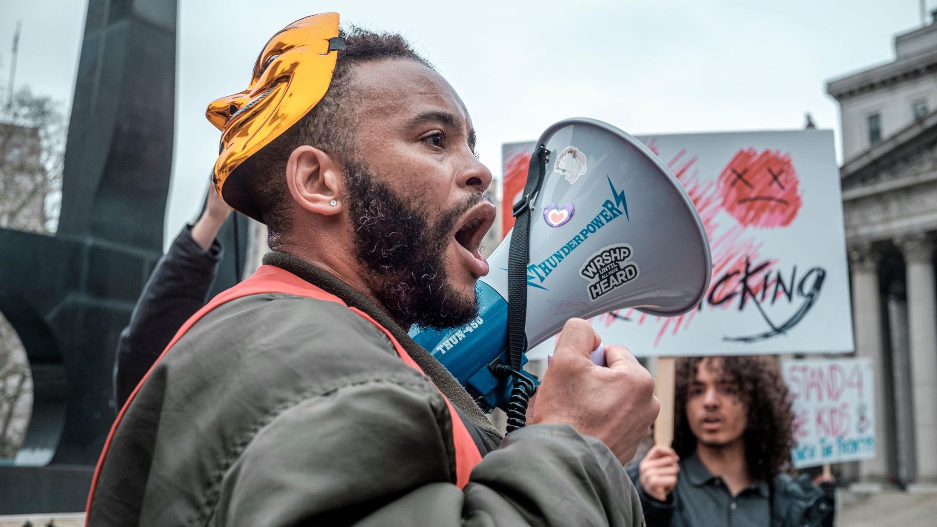 Finish Line: Participants at the torch run cheer before crossing the finish line together at Kendall Campus on March 14. The run is an annual event by the Miami-Dade County Sheriff’s Office to support Special Olympics Florida, an organization dedicated to serving athletes with intellectual disabilities. DIVYASRI KADAMBI/ THE REPORTERJustice Walk: Demonstrators march toward Foley Square in New York City on March 7 for the nationwide Save Our Children protest to raise awareness about child trafficking. LUCAS DUARTE/THE REPORTERSpeak Up: Jonni Qwest, an activist with the Save Our Children movement, addresses demonstrators during a protest in New York City on March 7. LUCAS DUARTE/THE REPORTERDefiant Dancing: Activist Joyana Newball is pictured dancing while protestors sing Michael Jackson’s They Don’t Really Care About Us during the Save Our Children rally in New York City. LUCAS DUARTE/THE REPORTERYouthful Voices: Two kids joined protestors in New York City on March 7 to support the Save Our Children movement, which advocates against child trafficking. LUCAS DUARTE/THE REPORTER