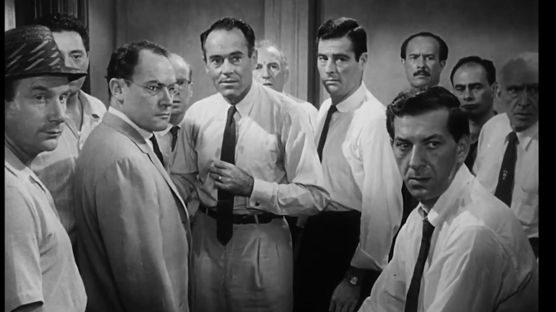 12 Angry Men’s secrets and intricate tricks are brought to our attention the moment the jury is first presented on screen as we see them stuck in a room where the AC doesn’t work. Director Sydney Lumet masterfully uses their various levels of agitation to set the tone for what is to come.