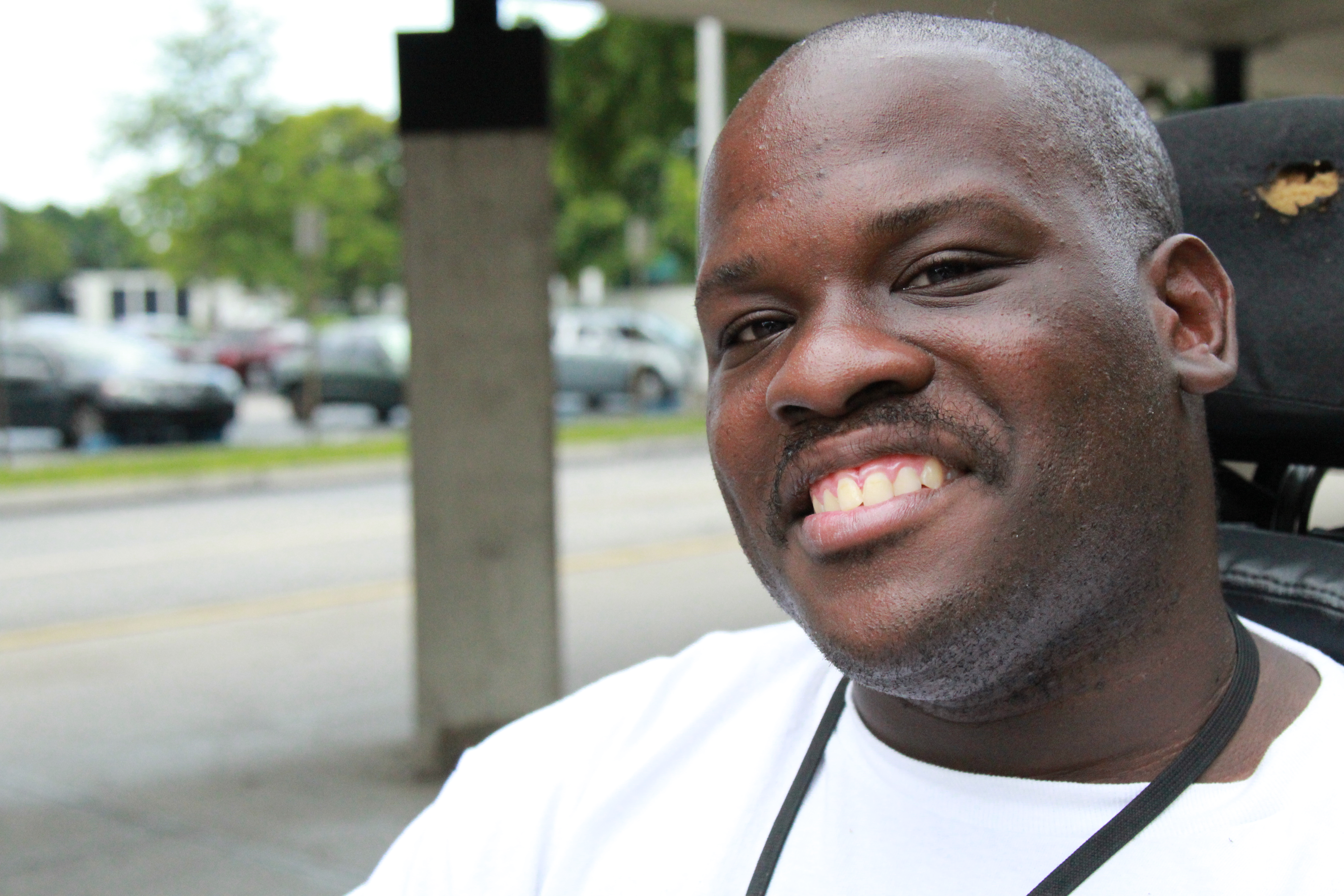 Suspending himself from his seat with his arm on his wheelchair armrest, 26-year-old Kenry Maime erupts in laughter, shaking his motorized wheelchair when asked about his hobbies, like going to the mall with friends.