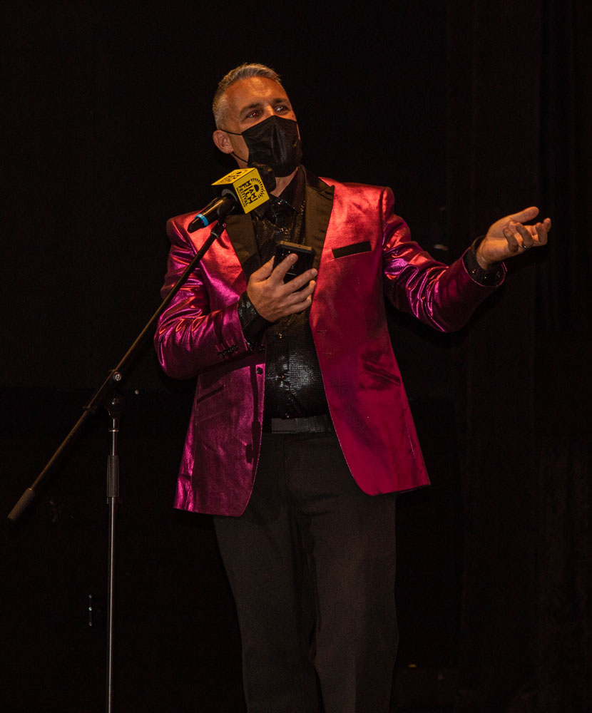 El Fin: Jaie Laplante, the executive director of the Miami Film Festival, talks on the stage at the Silverspot Cinema on March 14 during the closing night of the festival. ALICE MORENO / THE REPORTER