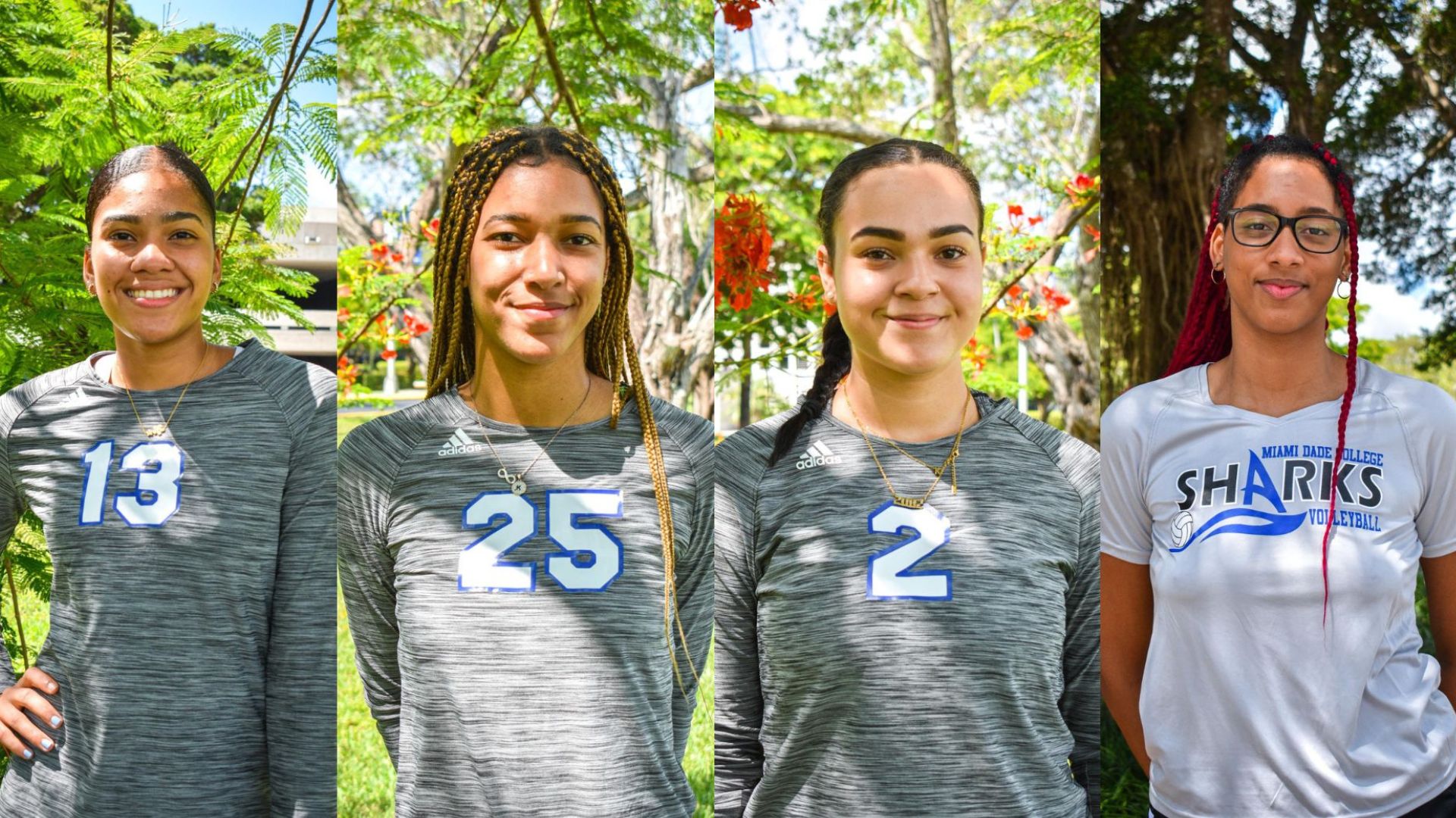 Four Miami Dade College volleyball players, who played significant roles on a Lady Sharks volleyball team that finished a win short of a national title, received scholarships to continue their collegiate careers.