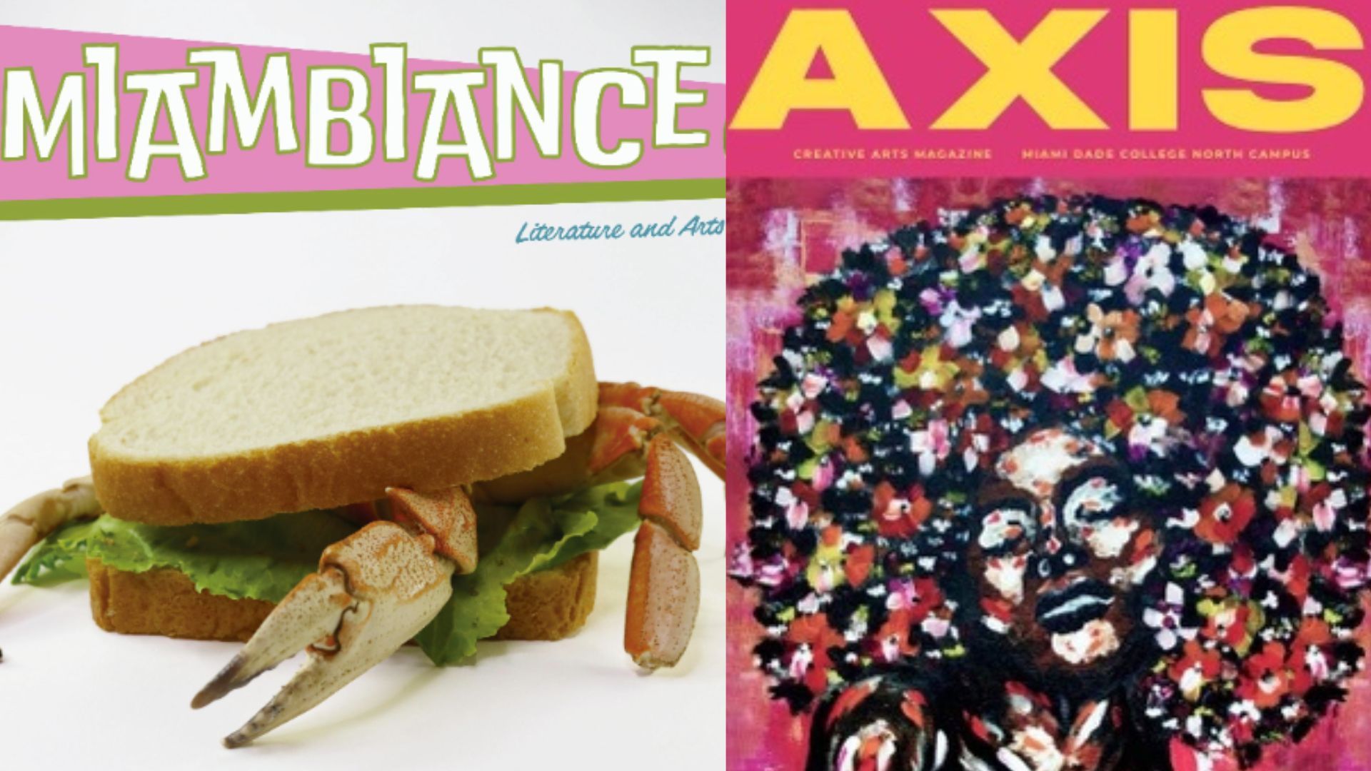 Miamibiance, the literary arts magazine at Kendall Campus, and AXIS, the creative arts magazine at North Campus, were named finalists for the Columbia Scholastic Press Association Crown Awards in the college literary magazine category on Dec. 13.