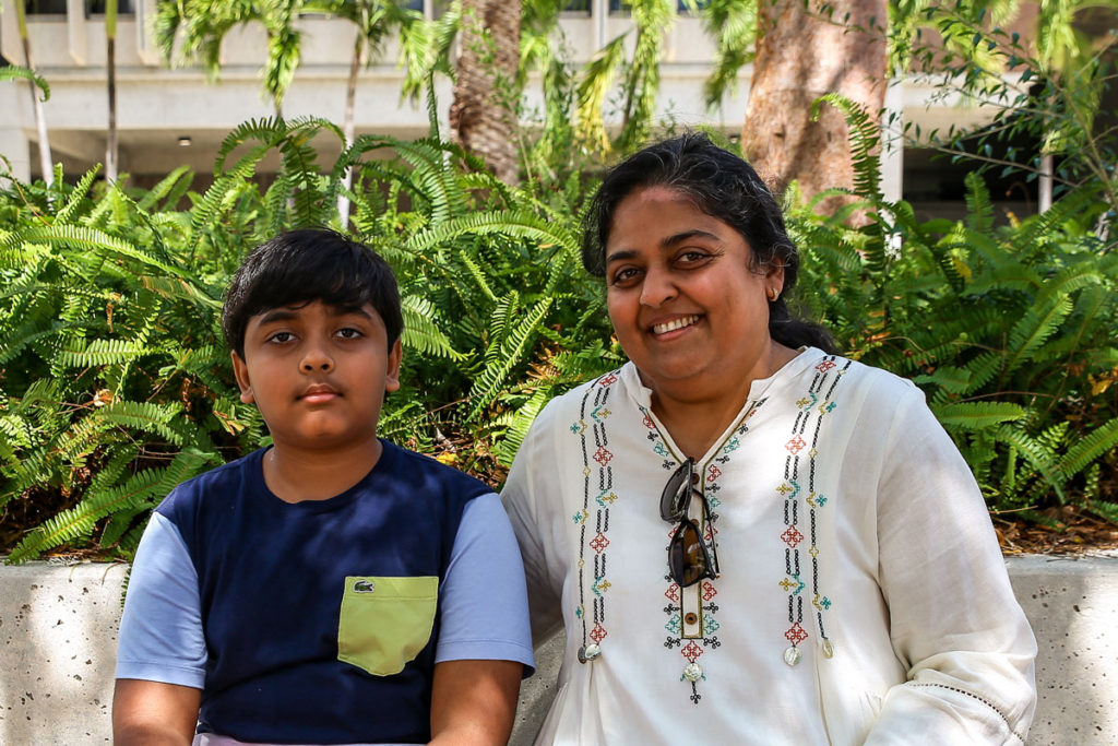 Kendall Kid: Noah Thomas,11, poses with his mom Rani Thomas at Kendall Campus. Noah enrolled in 10 credits at the campus this semester. DANNA QUINTERO/THE REPORTER