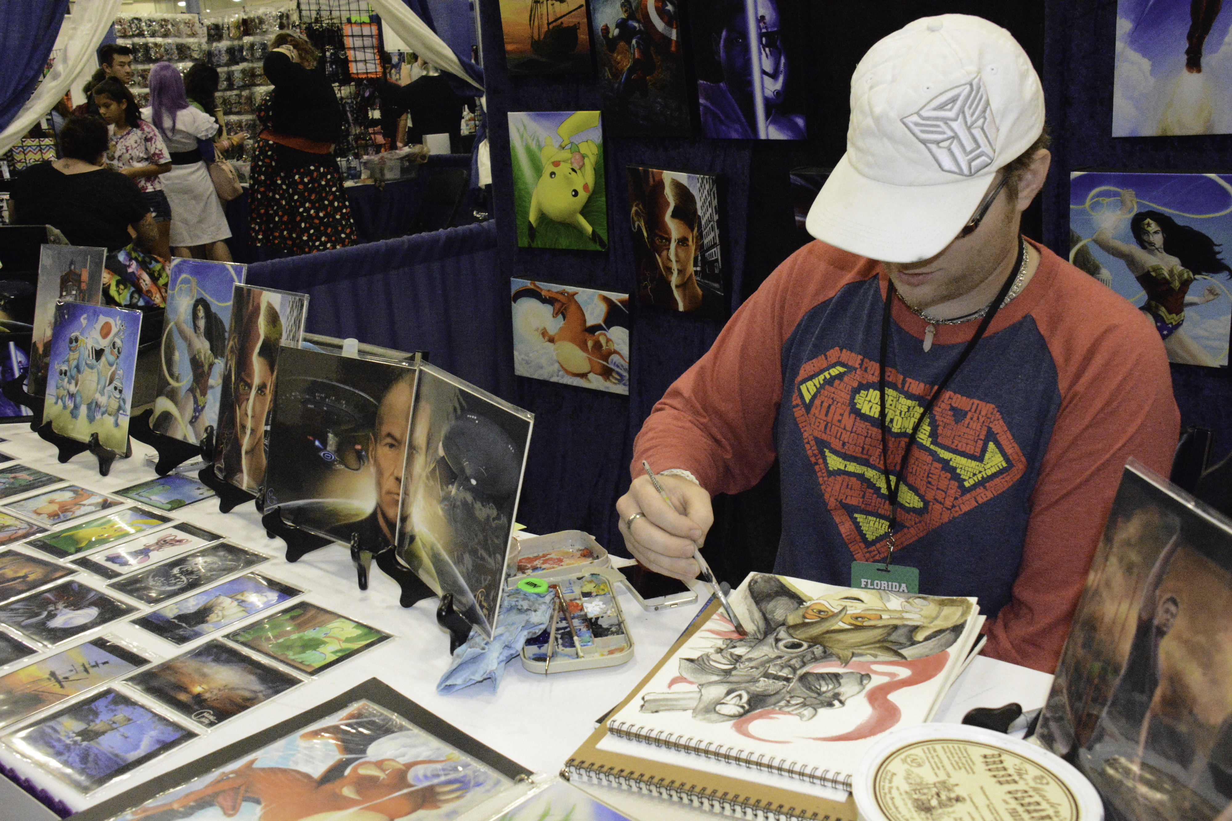 Artist At Work: Michael Carey draws Tracer and Reaper from Overwatch on July 2 during Florida Supercon held at the Miami Beach Convention Center.