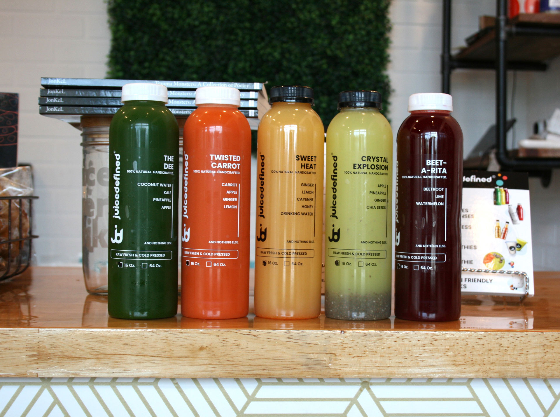 All of JuiceDefined ingredients are organically grown and derived from local and wholesale produce stores, such as 100% Food Group, a distribution company.