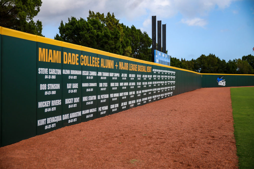 The new fence also celebrates Miami Dade College’s rich baseball tradition. A segment in left field lists all 74 previous alumni who have played in the Major Leagues and the date they made their debut.