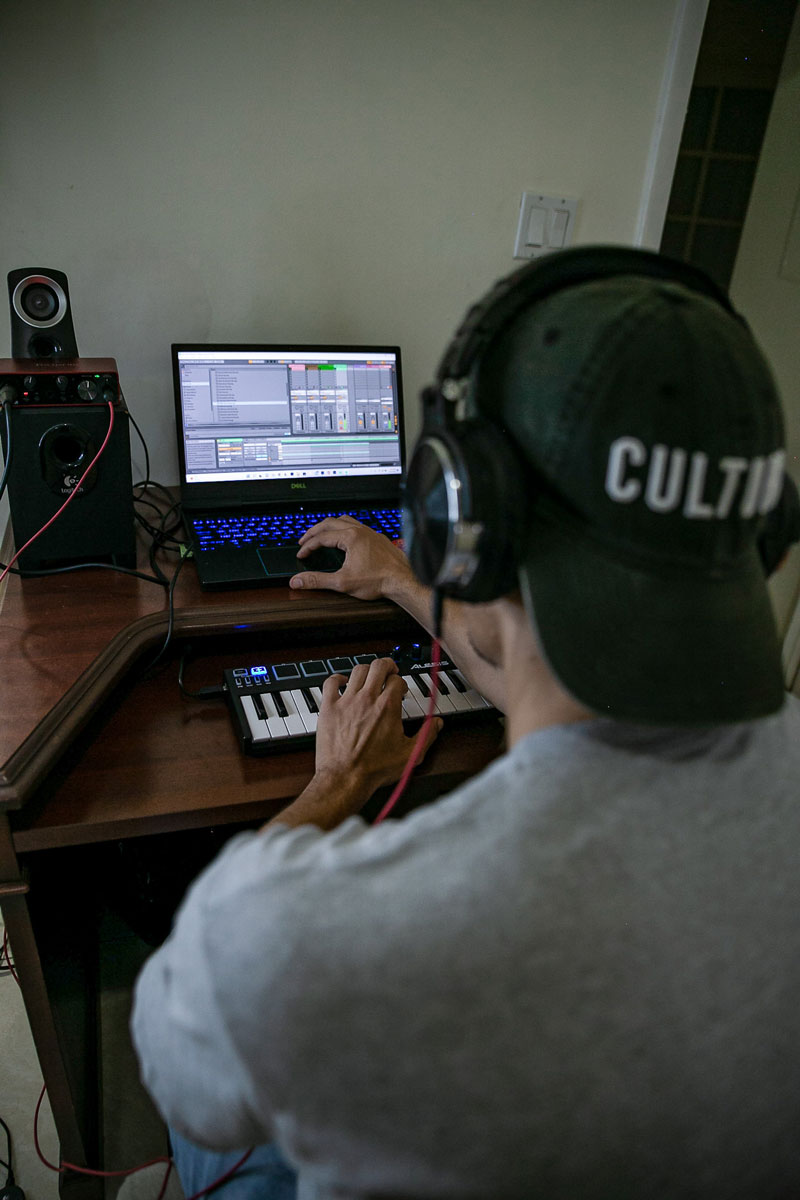 Building His Rep: Isaac Gomez, a 2019 graduate of Kendall Campus, has been carving his musical identity since 2014. The rapper is pictured here working on his music. DANNA QUINTERO/THE REPORTER