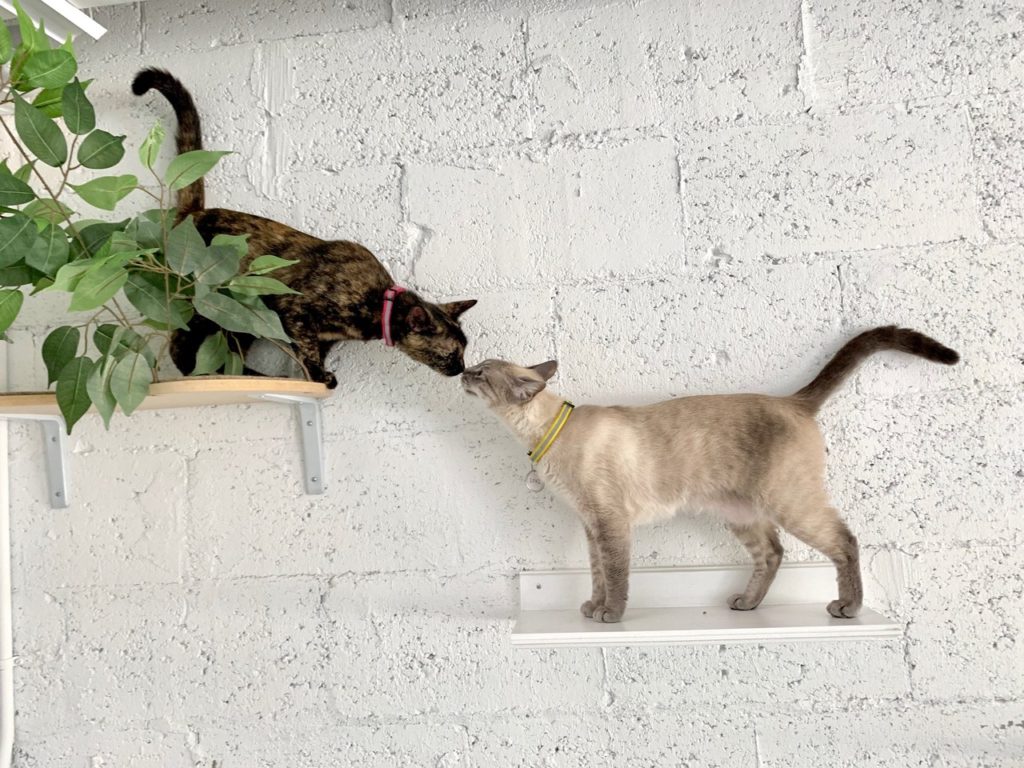 Safety measures at the café include the mandatory use of masks, floor markings to social distance and hand sanitation stations. A maximum of eight people are allowed into the cat lounge at a time (so online reservations are advised).