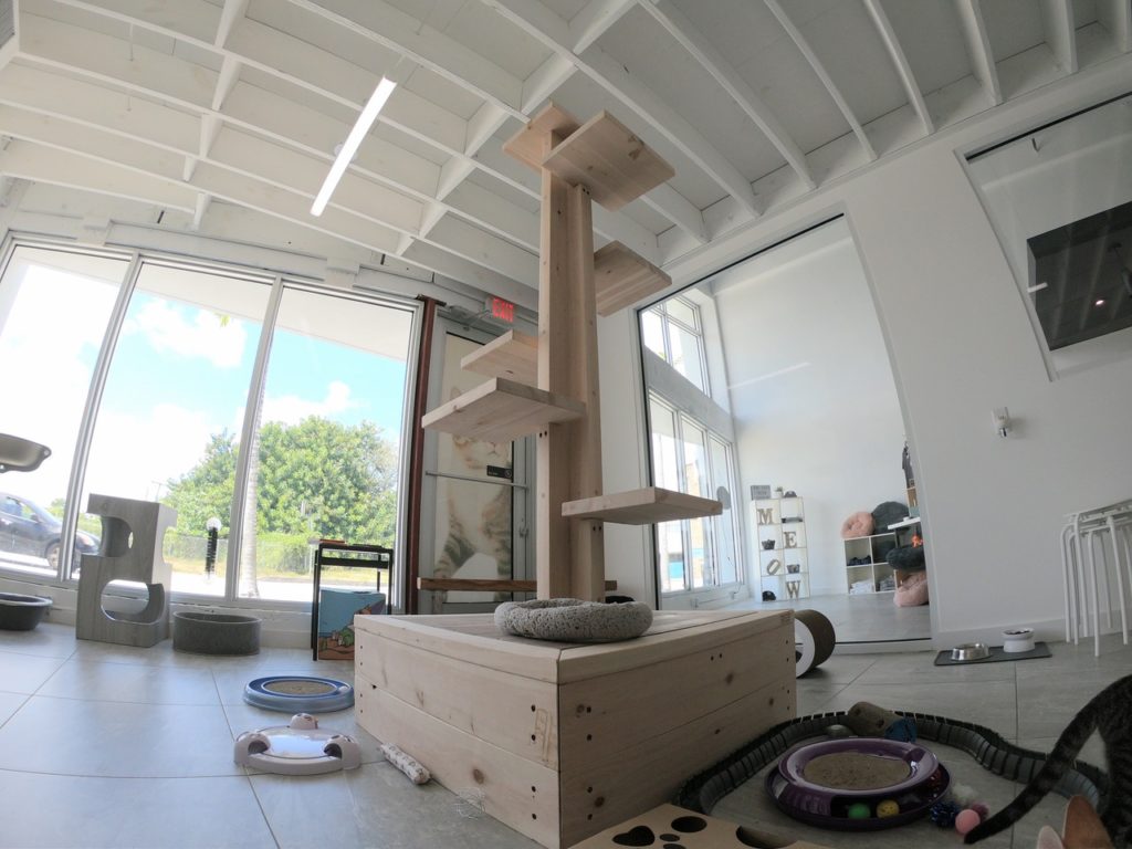 It officially opened on March 7—the grand opening was delayed until June 27 because of the coronavirus pandemic—and features an open space concept outfitted with cat trees, colorful rugs, cat mazes, tunnels and plush seating areas.