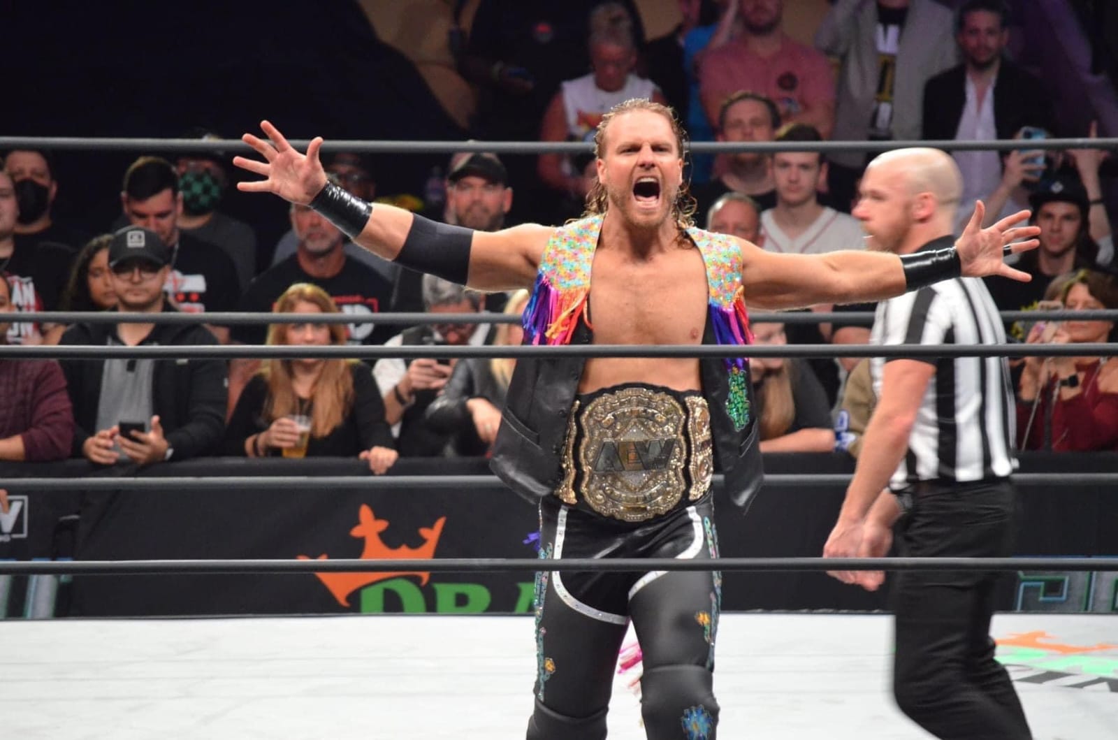 Fired Up: All Elite Wrestling superstar “Hangman” Adam Page encourages a crowd before a match against Adam Cole at Revolution 2022, which Mesa covered in Orlando. PHOTO COURTESY OF STEVE MESA