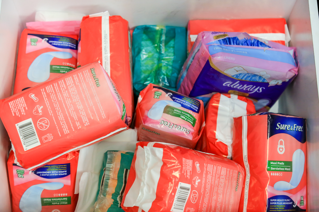 Students who want to receive items fill out an in-take form and bring their class schedule and student ID when receiving the products.
