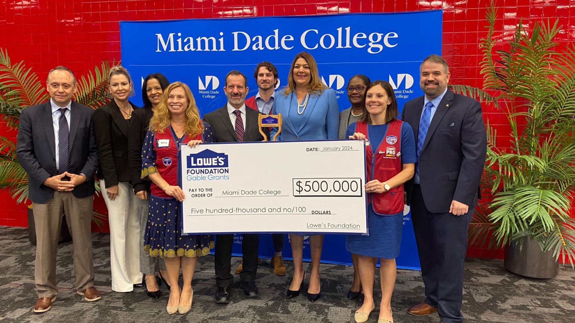 Miami Dade College’s North Campus was awarded a $500,000 grant by the Lowe’s Foundation for the development of its Construction Trades Institute, a program aimed at preparing students for the skilled-trades industry.