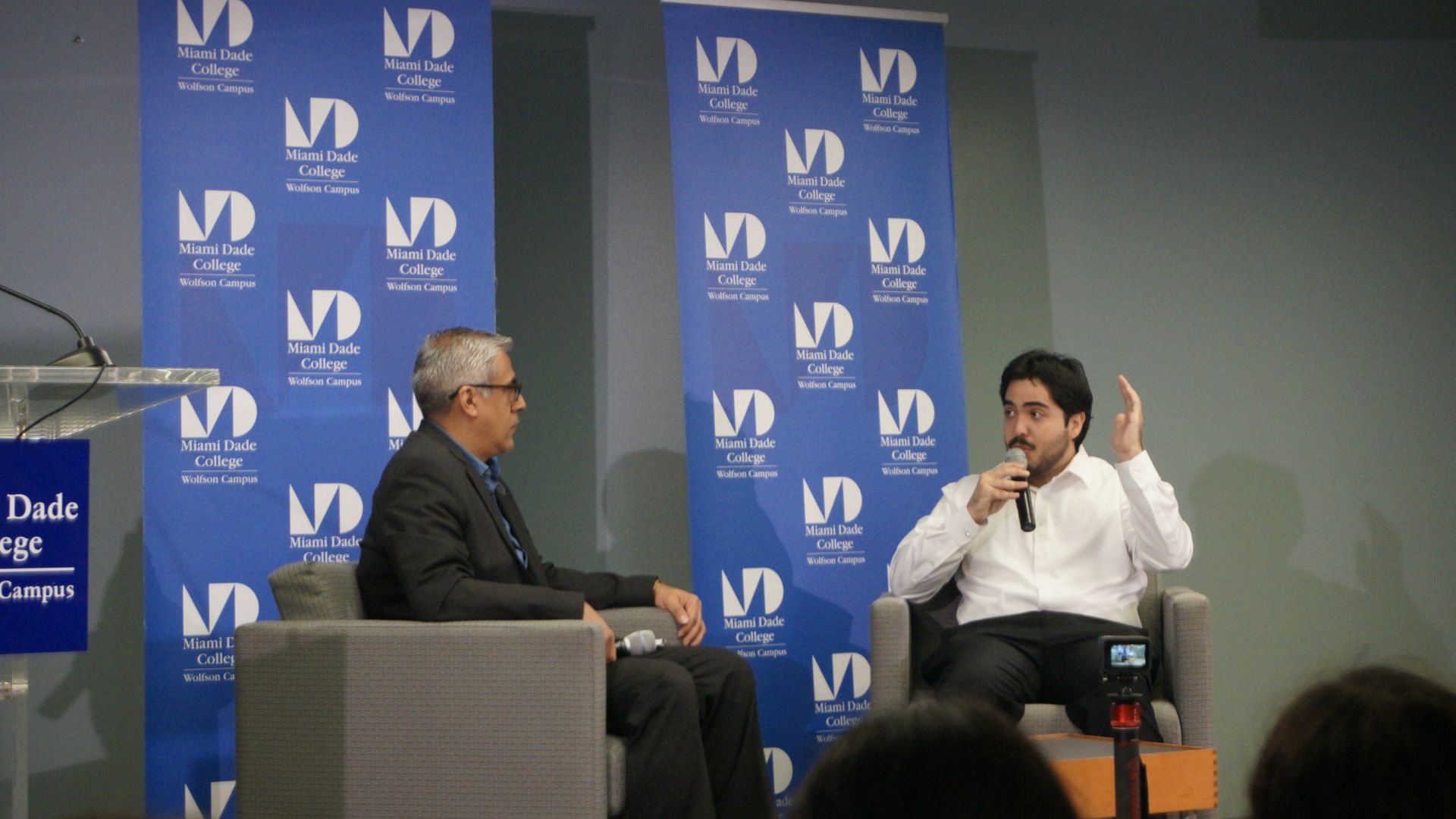 Journalistic Insight: This year’s Miami Dade College Journalism Speaker Series kicked off on Feb. 11 at Wolfson Campus with Joshua Ceballos, the local government accountability reporter at WLRN. Ceballos is pictured at right. ANGELINA CABRERA/ THE REPORTER