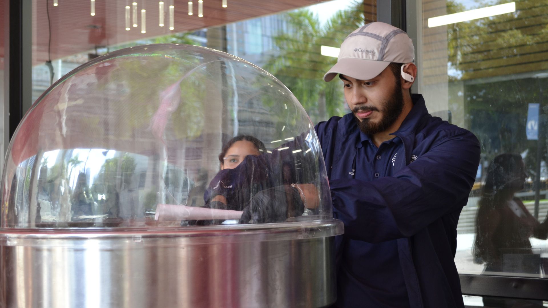 Sweet Treat: A man prepares cotton candy during Wolfson Campus’ Don’t Go Breaking My Heart Love Fest Fair on Feb. 12. ANGELINA CABRERA/ THE REPORTER