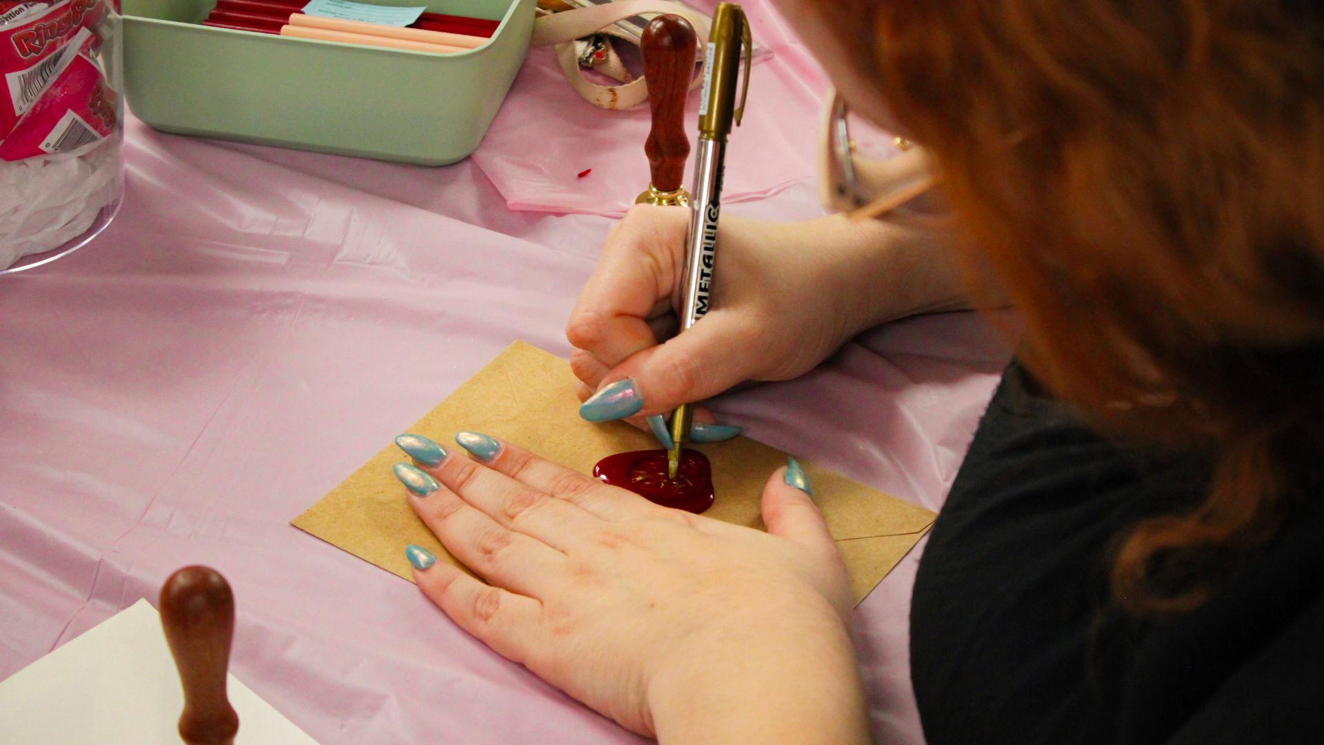 Open Heart: The Learning Resources department at Kendall Campus hosted a Valentine’s Day-themed Open House on Feb. 11. It included treats such as chocolate roses, lollipops and chocolate kisses. Pictured is a young woman creating the seal of a letter. ISABEL PAZ/ THE REPORTER