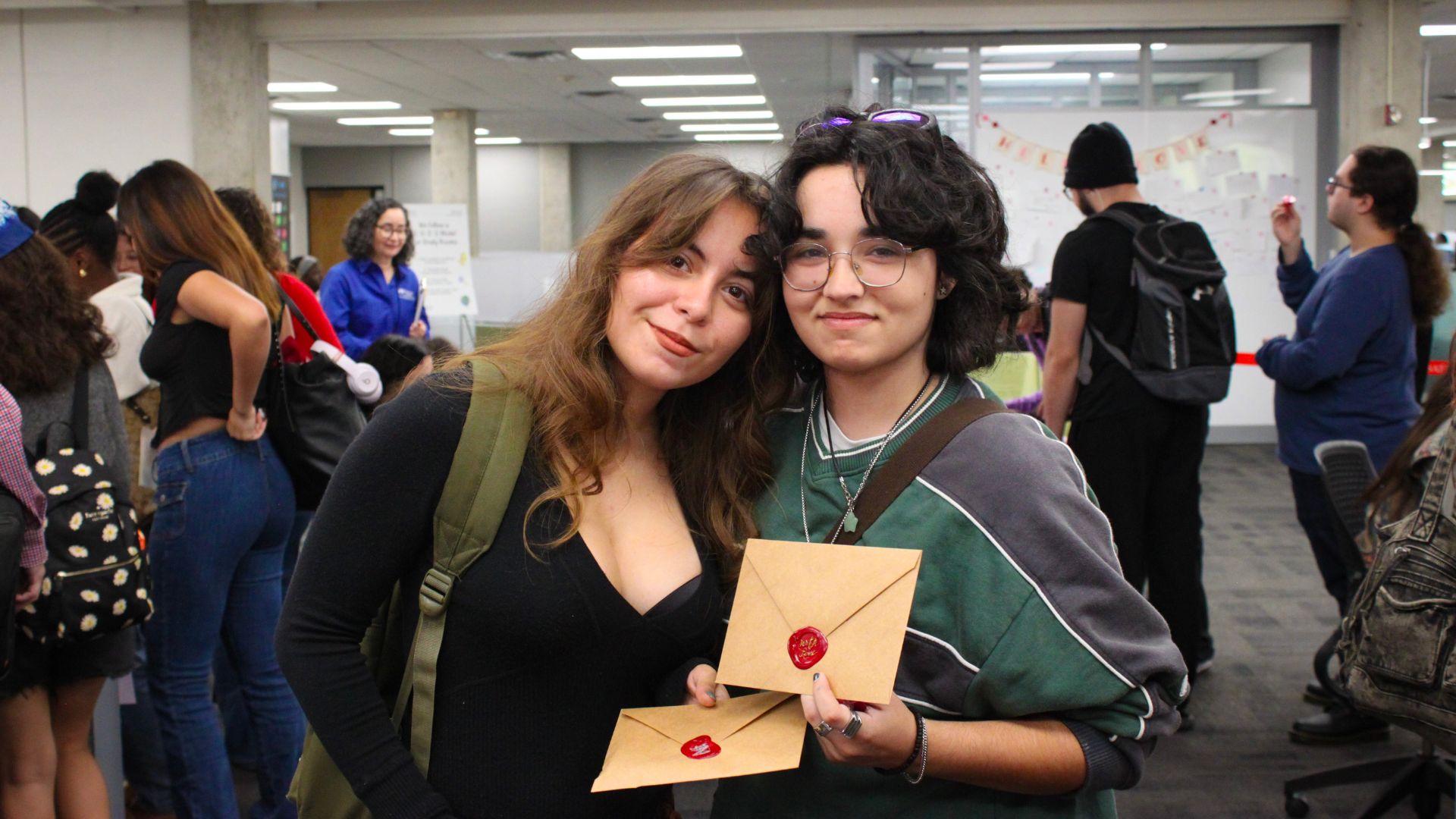 Valentine’s Letters: Two young ladies pose with letters from the Learning Resources Valentine’s Day-themed event at Kendall Campus on Feb. 11. ISABEL PAZ/ THE REPORTER