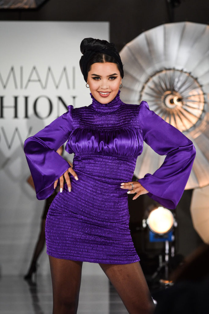 Fit for A Queen: Designer, Inna Yamets, showcases a new collection of work at this year’s Miami Fashion Institute’s Graduate Show on June 11. Yamets said the look was inspired by Marie Antoinette, who was famous for wearing purple slippers to the guillotine. BRIANNA ACEVEDO / THE REPORTER