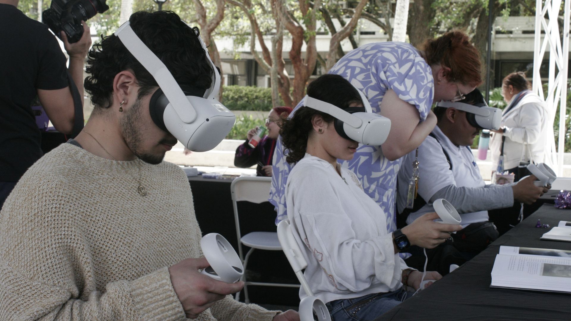 Virtual Experience: On March 3, Kendall Campus kicked off Women’s History Month with a Purple Party held at Fred Shaw Plaza. The event included food and drinks from women-owned businesses, a letter-writing station, and VR headsets to draw and paint. JOHN IZQUIERDO/ THE REPORTER