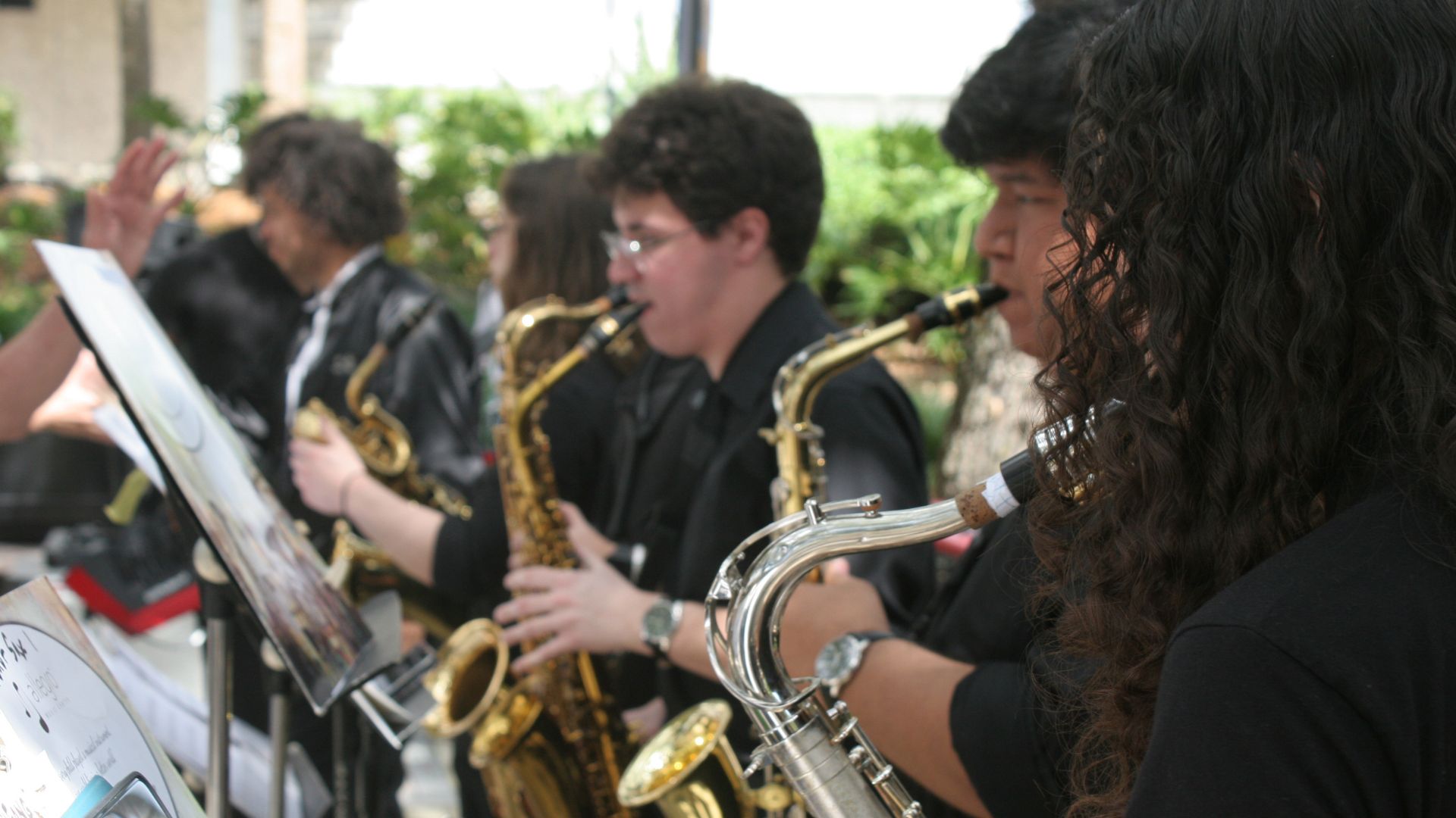 Harmonic Tune: Kendall Campus held a Transfer Fair on Feb.19 in the building 2000 breezeway where students received information from schools like the University of Florida and Florida State University. Pictured is the Jazz Ensemble who performed at the event. JOHN IZQUIERDO/ THE REPORTER