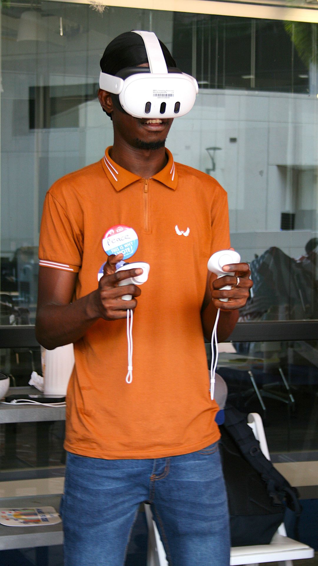 Metaverse: Wolfson Campus student Demosthene Lentzky interacts with a virtual reality simulation at a Changemaker Week tabling event on Sept. 17. NIKOLE VALIENTE/THE REPORTER
