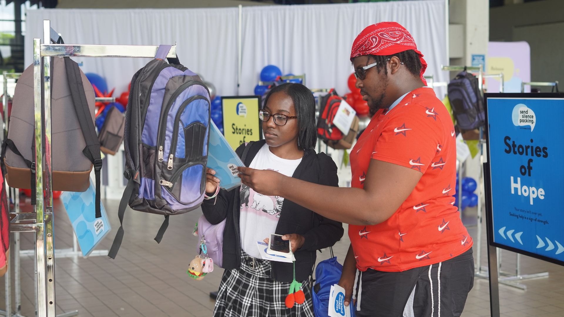 Moment of Silence: North Campus students explore the Send Silence Packing Traveling Exhibit on Sept. 18. It features more than 100 backpacks and personal stories, honoring the lives of those lost to suicide. DEITY MONE’K/THE REPORTER