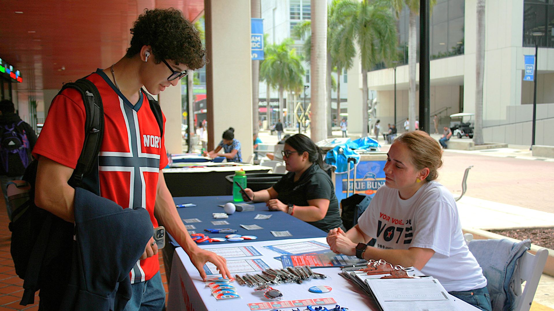 Civic Engagement: A student learns about the importance of voting during National Voter Registration Day at Wolfson Campus. NIKOLE VALIENTE/THE REPORTER