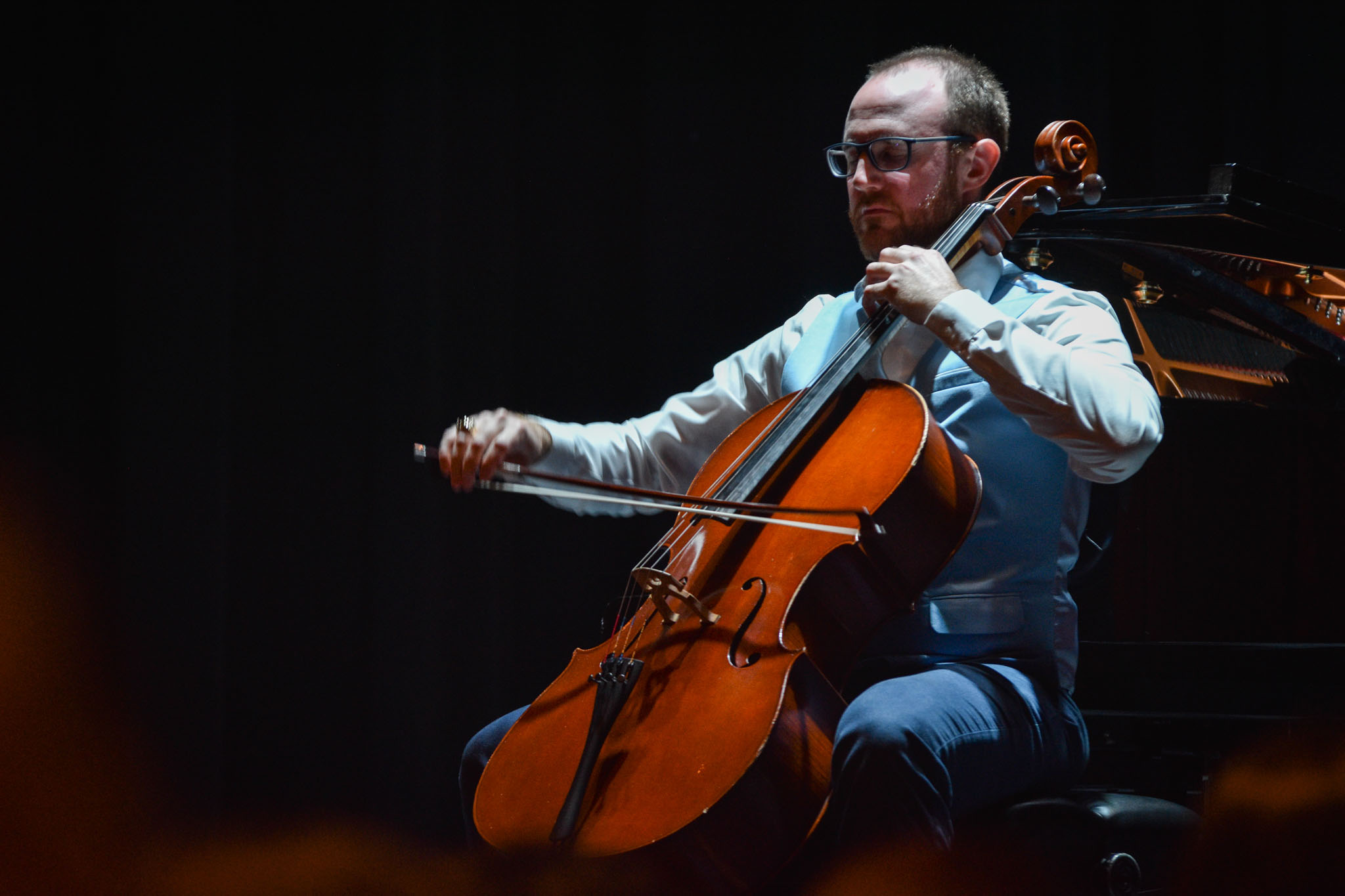 Stringing Them Along: Bryan Hayslett performs the Pulitzer Prize-winning piece, In Manus Taus by Caroline Shaw, at the New World School of the Arts Music Faculty Recital on Sept. 1. BRIANNA ACEVEDO / THE REPORTER
