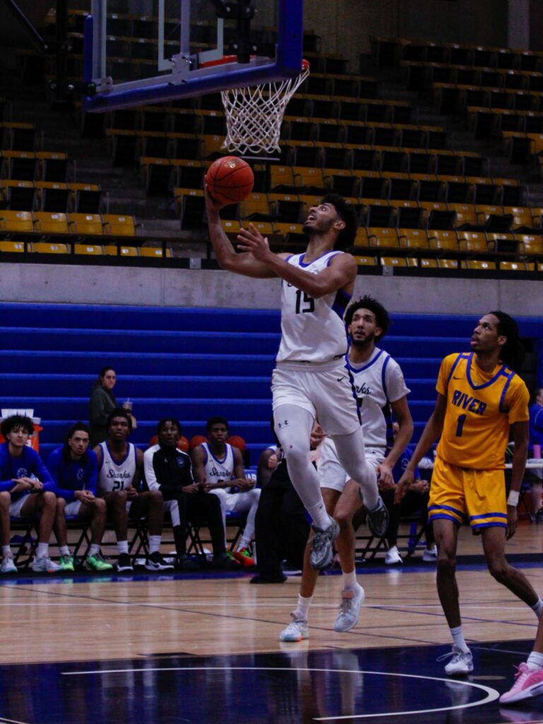 To The Hoop: Ibrahim Zahran drives to the basket during a home game versus Indian River State College on Jan. 10. He finished the game with nine points but sustained a fractured wrist, ending his season. YAIRI LORENZO/ THE REPORTER