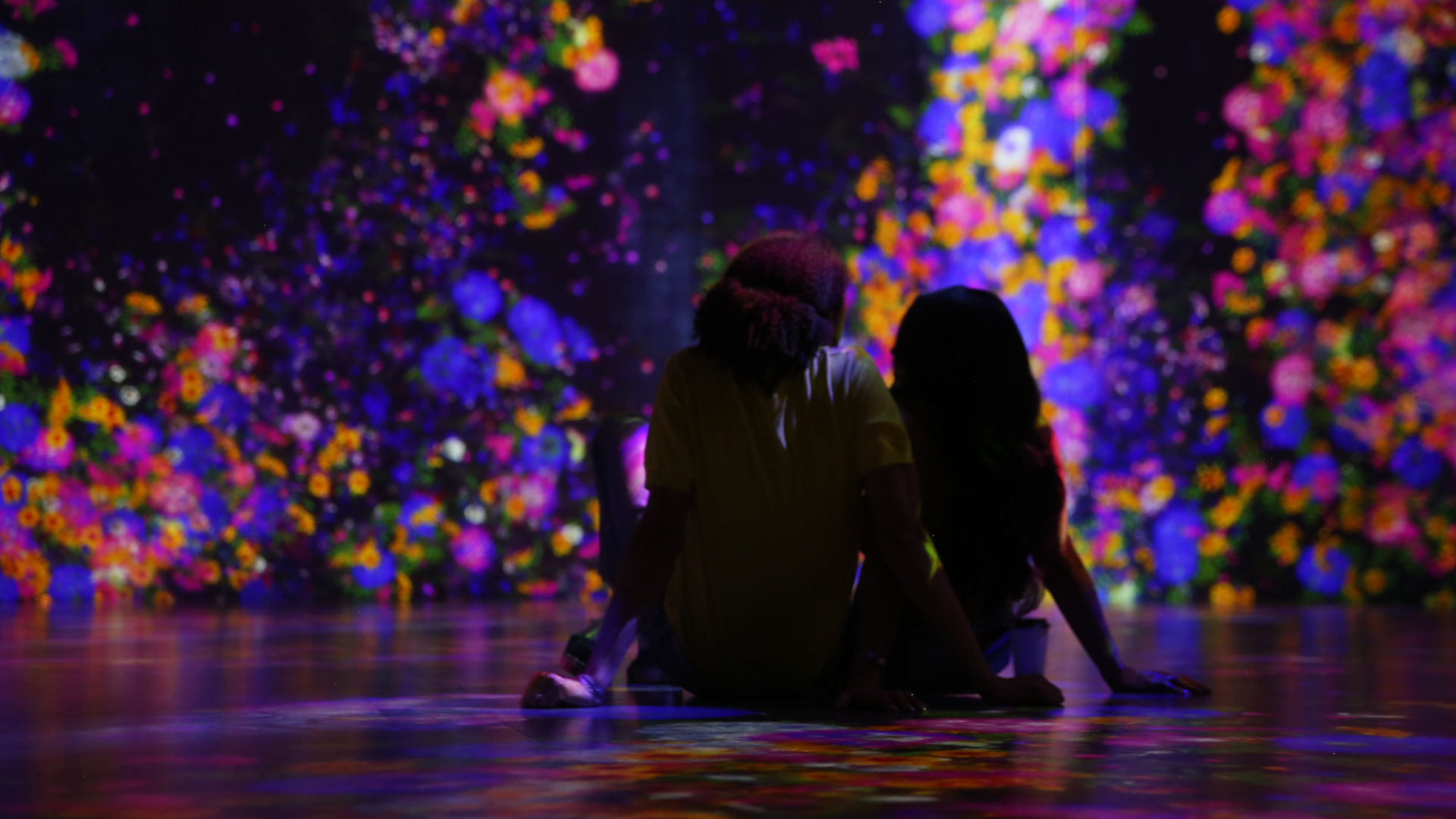 TeamLab’s Proliferating Immense Life, A Whole Year per Year, is an interactive digital Installation that shows flowers blossom, grow huge and die off, all accelerated by the viewer’s touch.
