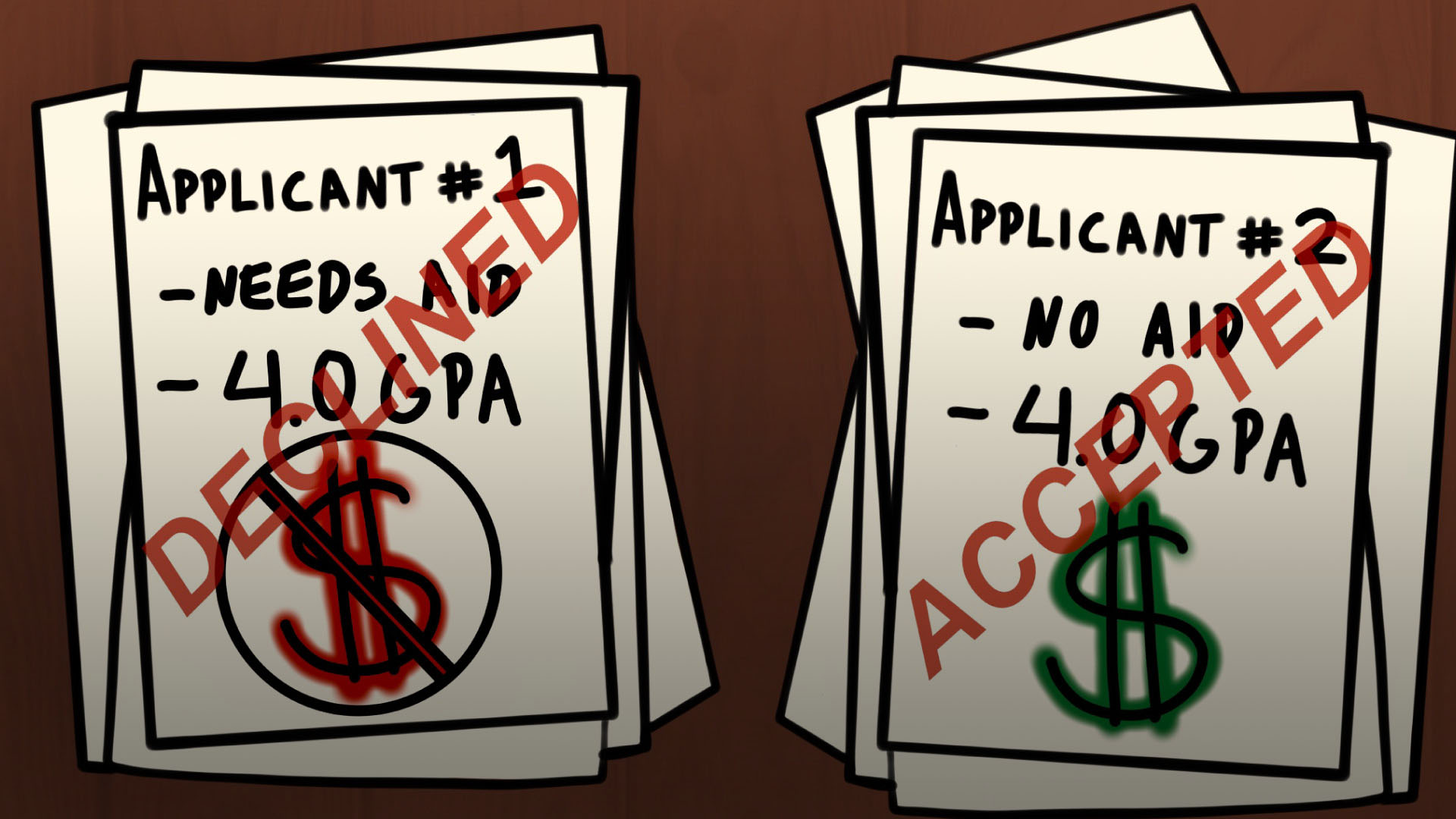 In this case, if two students are evenly matched, the wealthier student is accepted to save the school money.