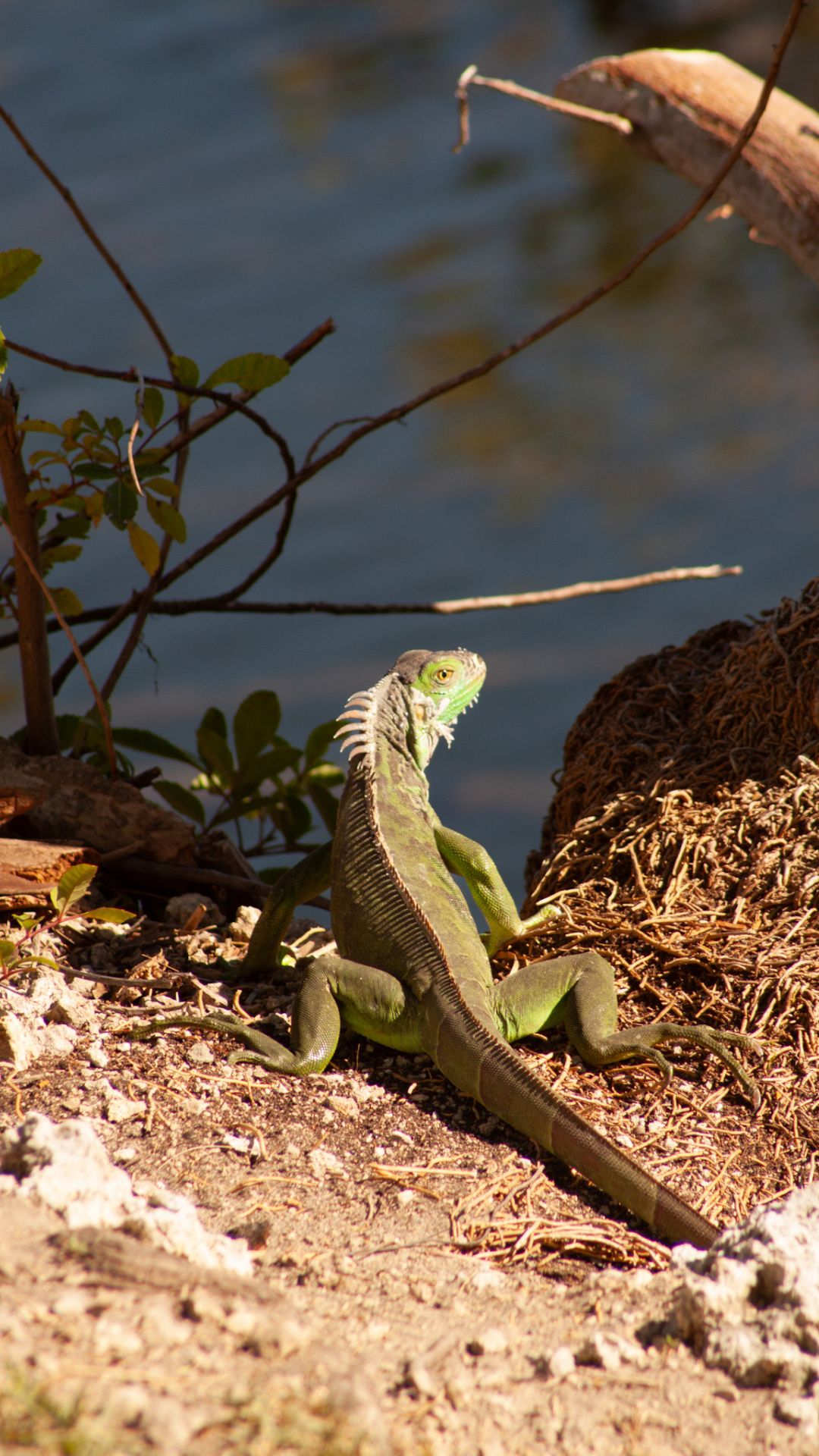 Other wildlife include the slinky green iguanas, who blend seamlessly into the greenery, occasionally basking on the shores of the bodies of water on campus before scurrying into the brush.